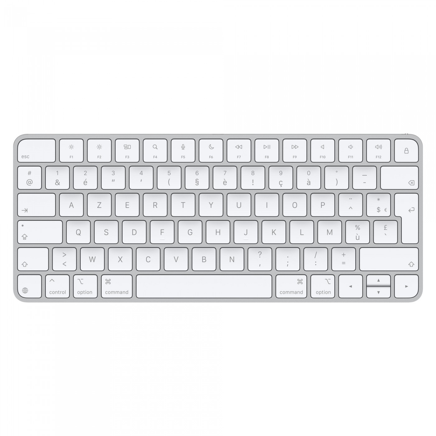 Apple Magic Keyboard (2ª gen, 2021, modello A2450) — Wireless Bluetooth, ricarica Lightning, layout AZERTY Francese (FR), finitura alluminio Silver con tasti bianchi. Compatibile con tutti i Mac tramite Bluetooth (macOS 10.15 o successivo). Condizione: NUOVO, confezione aperta.
