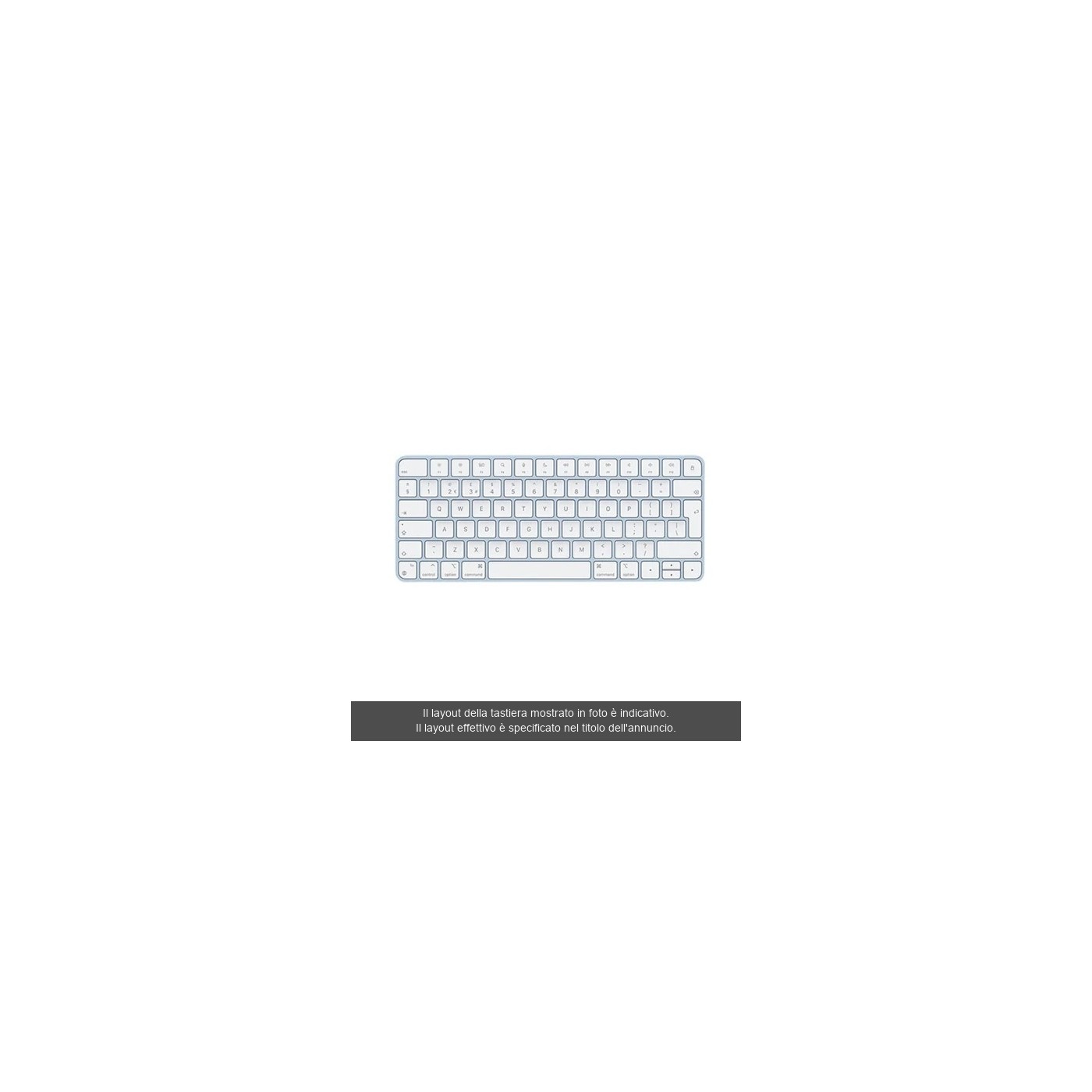 Funzionalità: Tasto blocco schermo dedicato. Tasti funzione ridefiniti (F4-F6 per Spotlight, Dettatura/Siri, Non Disturbare), tasto Globe per emoji e cambio lingua, frecce direzionali full-size.