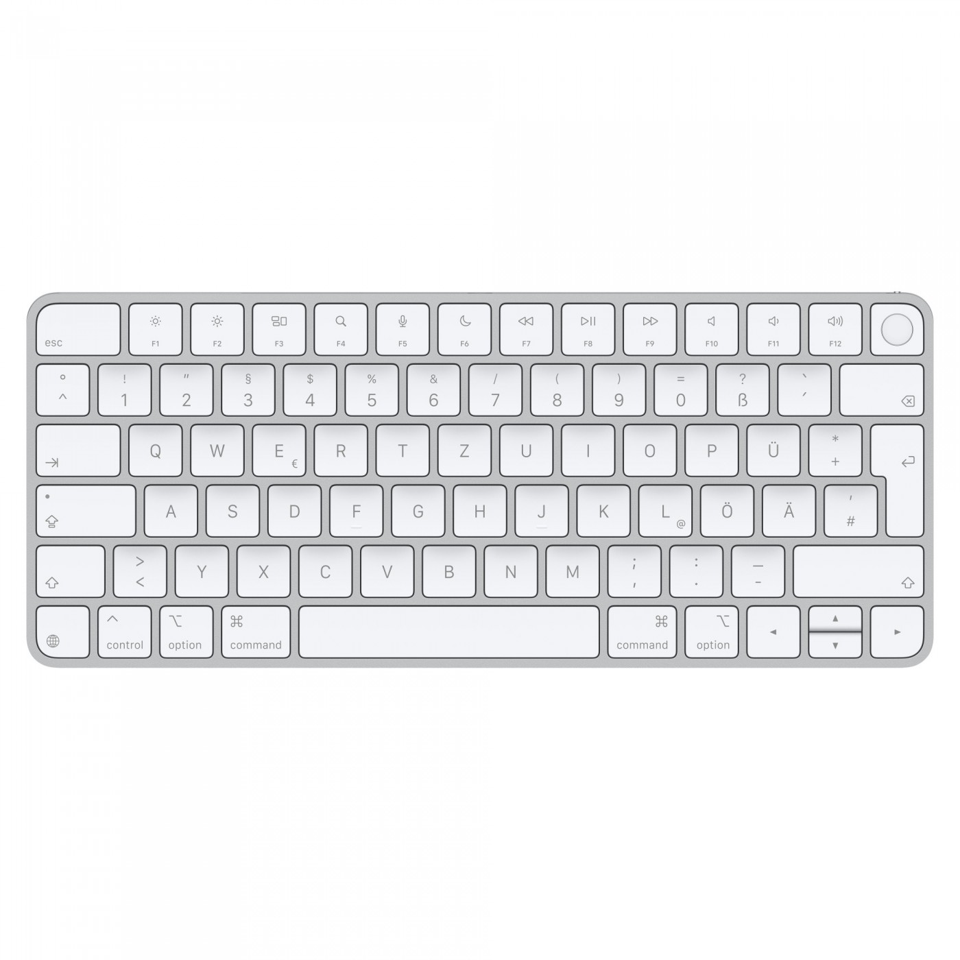 Apple Magic Keyboard con Touch ID (2ª gen, 2021, modello A2449) — Wireless Bluetooth, ricarica Lightning, layout QWERTZ Tedesco (DE), finitura alluminio Silver con tasti bianchi. Touch ID compatibile solo con Mac Apple Silicon (M1/M2/M3/M4/M5). Condizione: NUOVO, confezione aperta.